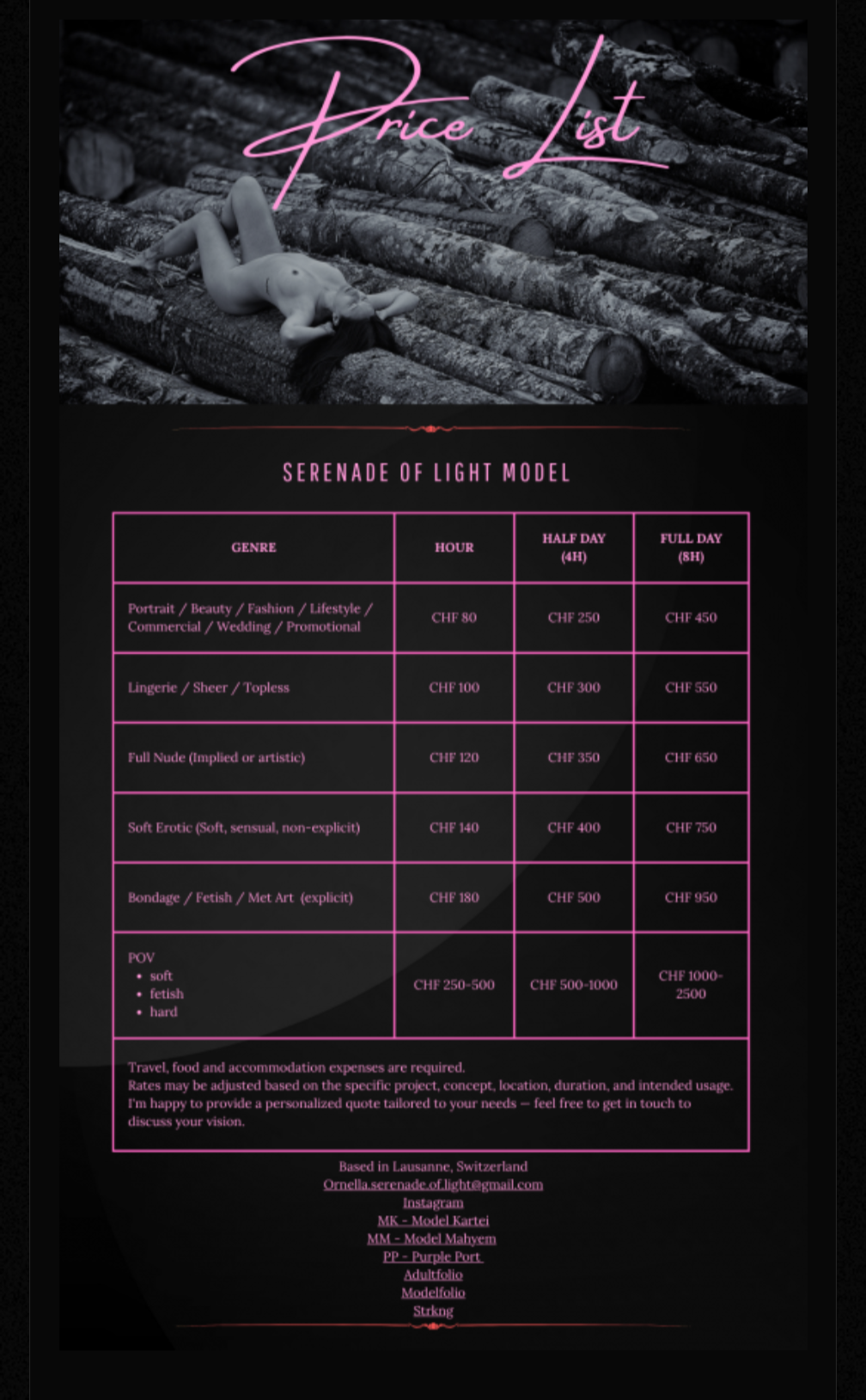 I’m a professional Italian model and creative soul based in Switzerland, open to new paid collaborations.