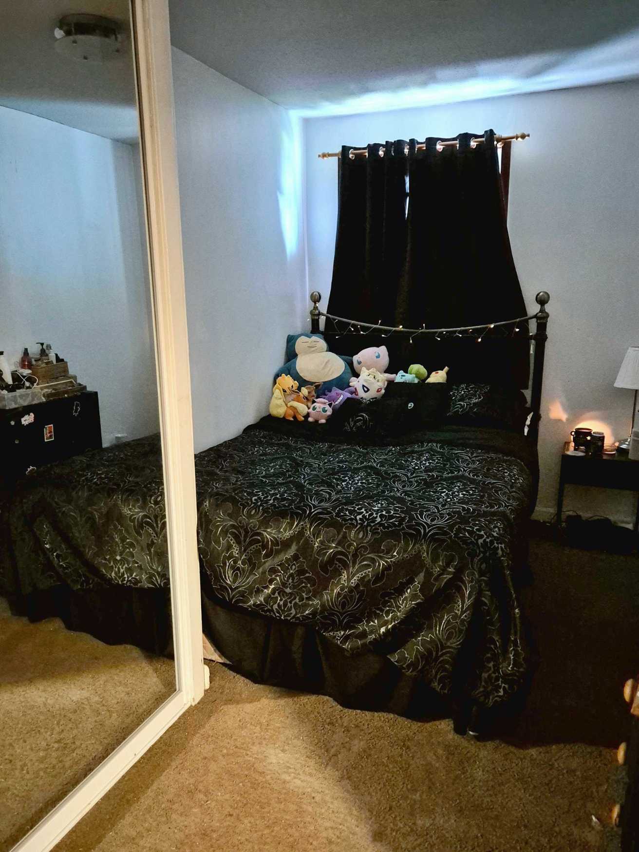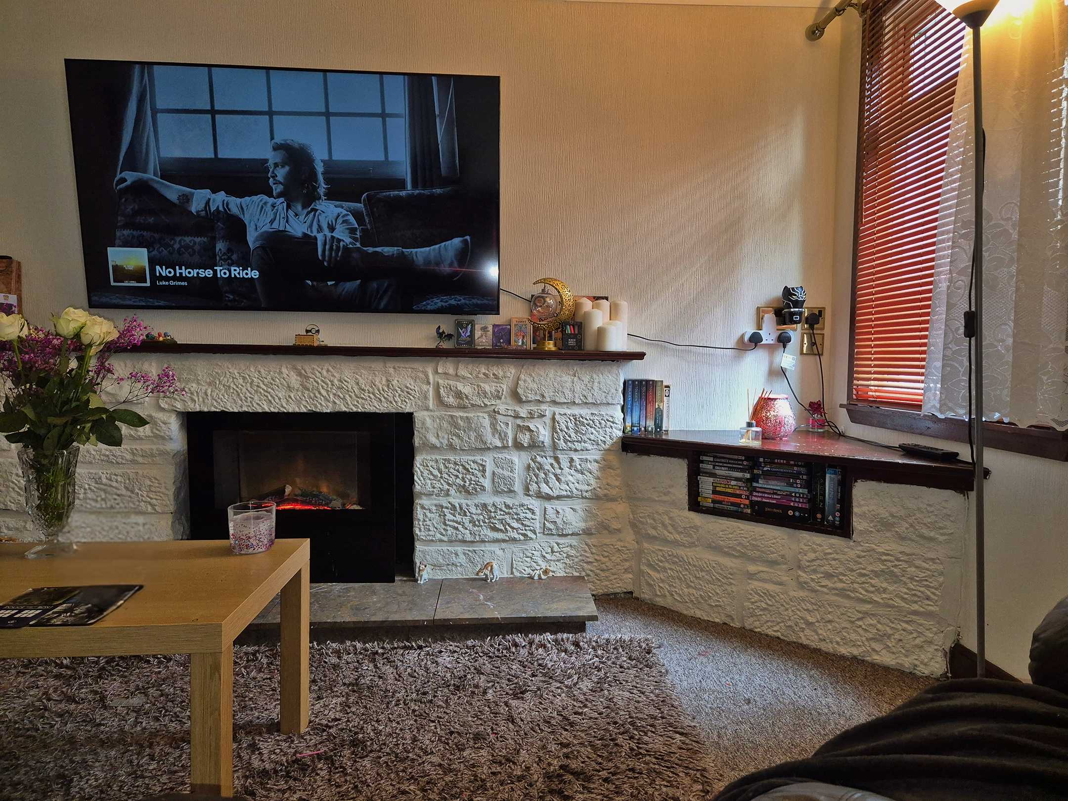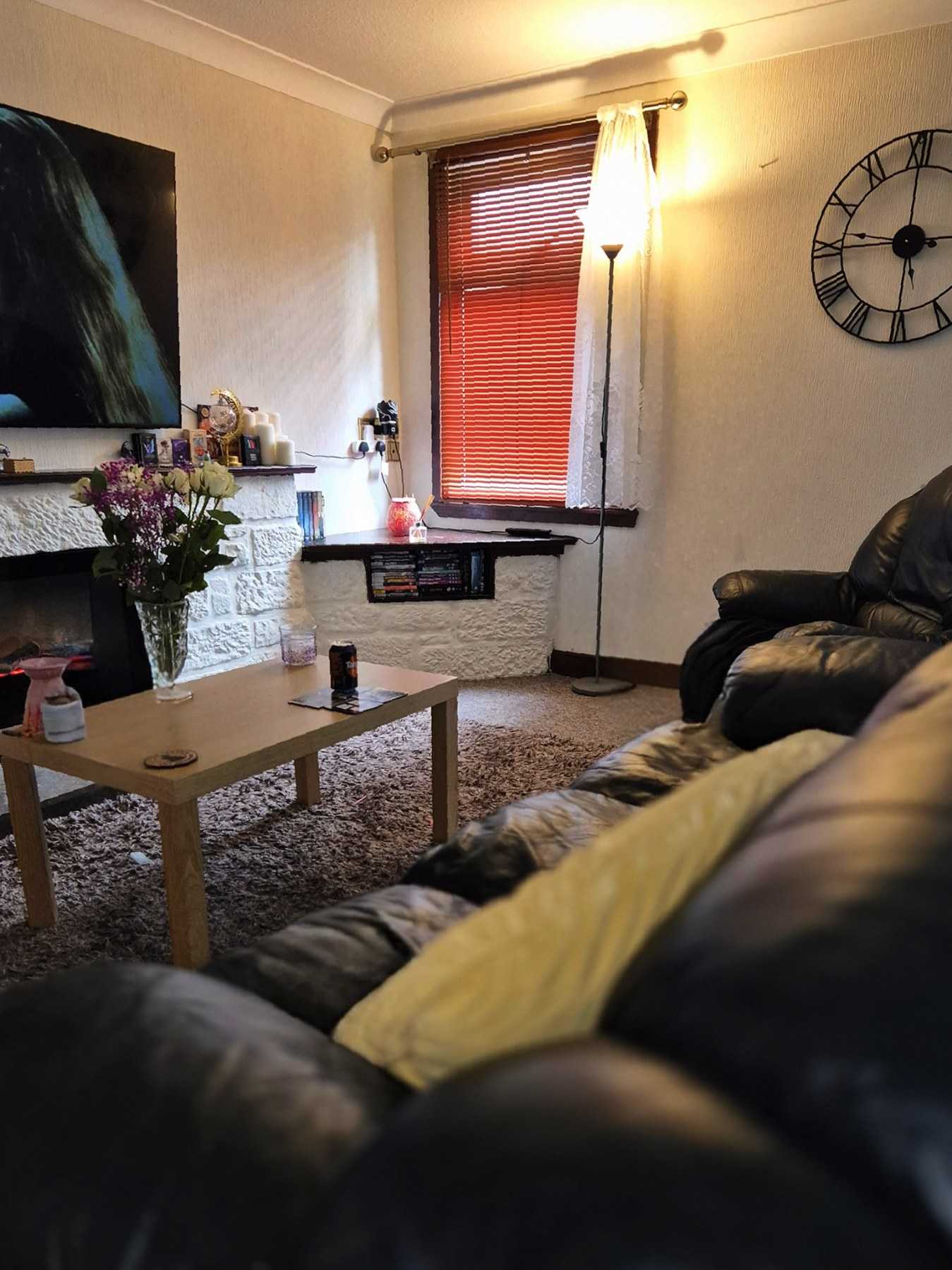 I can make a lounge set with the sofa, an arm chair type lounge set, we can use my white stone fireplace, or bedroom. My bedroom is a bit small so angles are limited, but it is doable. My lounge has plain magnolia walls and can create a perfect "white backdrop" The patio doors are covered with reflective coating, so weather dependant, the natural light is great and nudity at my doors can be done wihout anybody seeing in! The patio doors have black curtains up now, which can also make a backdrop. I have black stools, a kitchen table etc too.